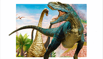 평면 이미지를 입체로 변환 공룡 전시관 디스플레이
