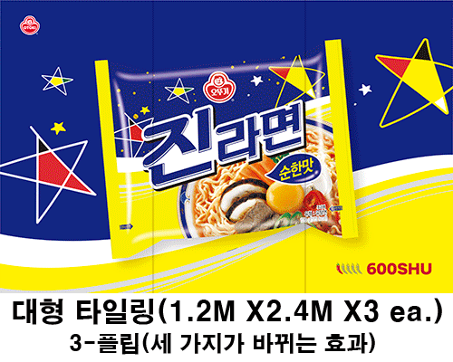 세 가지의 이미지가 삽입된 3-플립"의 대형 렌티큘러 이미지로 전체 사이즈가 가로 3.6M X 세로 2.4M(타일링 방식)입니다.